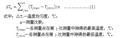 對恒定濕熱試驗設備及交變濕熱試驗方法的全部測量數據按測量儀器的修正值進行修正。按GB 6999查出相對濕度值。按下式計算溫度均勻度: