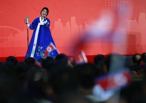 昨晚,平壤藝術(shù)團(tuán)也在世博中心紅廳獻(xiàn)演了《怒放的金達(dá)萊》。昨天結(jié)束世博演出后,平壤藝術(shù)團(tuán)將在寧波、廣州、深圳、珠海、昆明、重慶、武漢等20多個城市進(jìn)行巡演。